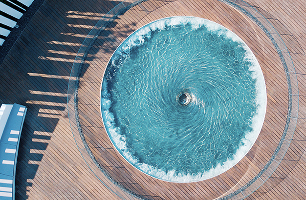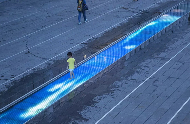 水本無形,它的物理特性讓它能輕易地跟隨容器而呈現(xiàn)不同的面貌。獨特的延展性使得水能呈現(xiàn)無以計數(shù)的不同效果。燈光的布置,介質(zhì)的紋理,顏色和動態(tài)都能給水帶來無窮的變化